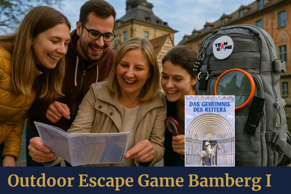 Entdeckt das „Geheimnis des Domreiters“ in einer fesselnden Outdoor Escape-Game-Tour durch Bamberg. Ausgestattet mit dem investigativen Rucksack voller nützlicher Utensilien wie Lupe, Kompass, Metermaß und Lampe – begebt ihr euch auf eine spannende Schnitzeljagd. An acht Stationen müsst ihr Rätsel lösen und Codes knacken, um die Schlösser des Rucksacks zu öffnen und an eure nächsten Hinweise zu gelangen. Diese einzigartige Route führt euch zu versteckten und geschichtsträchtigen Ecken der Stadt, wobei ihr Bamberg und das Mysterium des Bamberger Reiters auf eine ganz neue Art erleben werdet. Perfekt für Freunde, Kollegen, Familien und alle Rätselbegeisterten! Stärkt eure Zusammenarbeit und Kommunikation, während ihr gemeinsam Herausforderungen meistert.